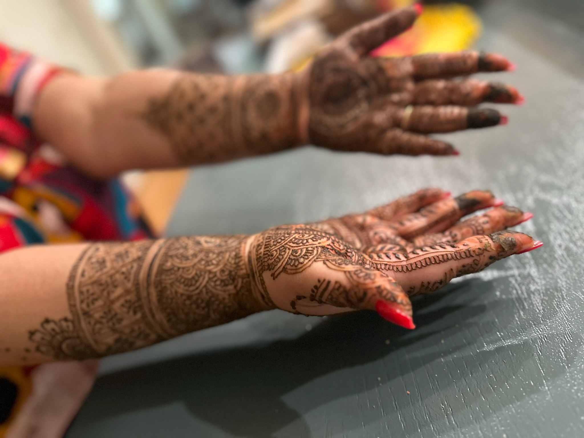 Maria began her journey with henna at just 13 years old, teaching herself through YouTube tutorials after realizing that no one in her family was particularly skilled at creating intricate designs. What started as curiosity quickly grew into a deep passion for the art form. Over the years, she has refined her technique, blending traditional patterns with modern influences to create designs that feel both timeless and personal.