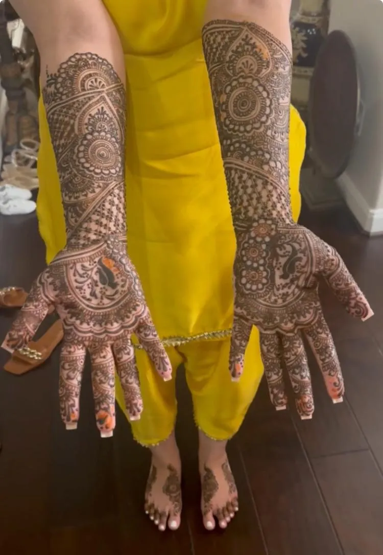 "Such an amazing experience! Every design is done with such precision, and the quality of products they use makes a huge difference. My henna has never looked better! I will be reaching out to Maria for every occasion to adorn my skin! She is just the best!"
